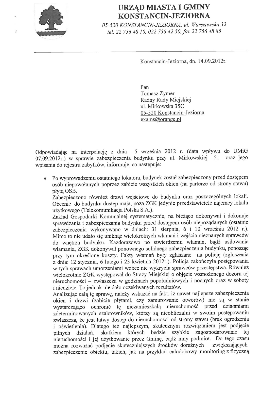 Jeśli spotkanie z inwestorem miałoby się odbyć PO głosowaniu na sesji w sprawie sprzedaży budynku, t mam nadzieję, że radni zażadają ZDJĘCIA tej uchwały z porządku obrad i zwrócenia jej do komisji. Ja tego nie zrobię (będę w tym czasie prowadził 60. dzieci na Zielonej Szkole na białoruskim pograniczu), ale poproszę panie radne J. Magdziarz i A. Konopkę, żeby spróbowały zablokować tę uchwałę, jeśli nie będzie wcześniej jasnych i wiarygodnych infomacji od inwestora.