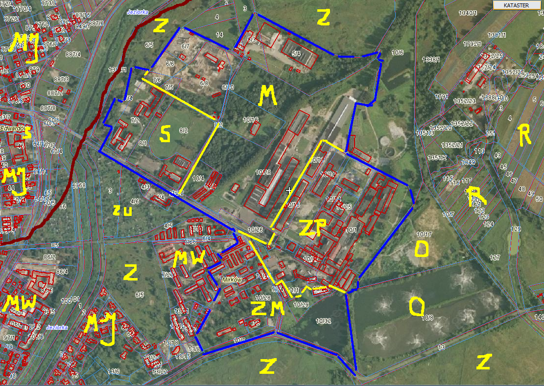 ZP - teren zachowania zabytkowej zabudowy przemysłowej Osady Fabrycznej Mirków ( w obecnym mpzp ? głównie obszar P)